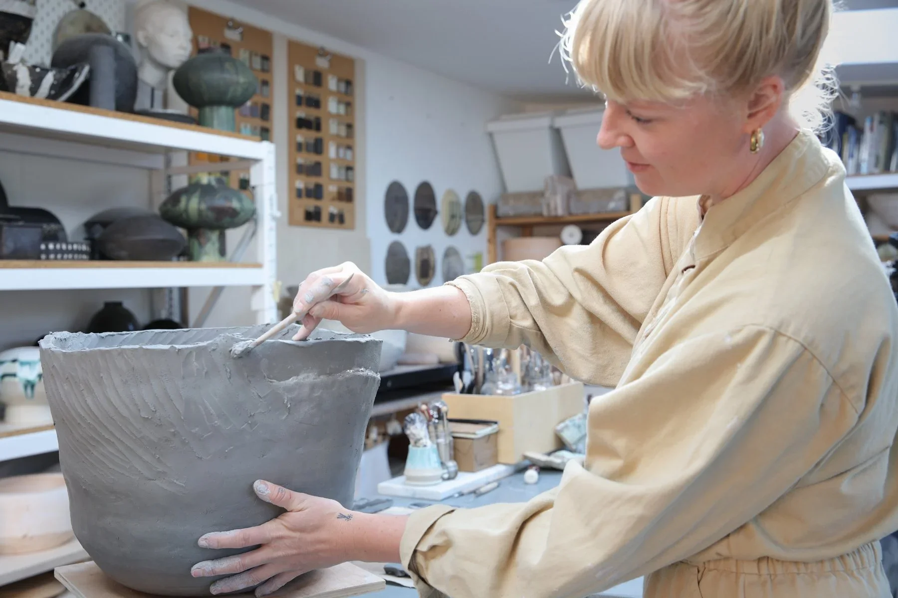 She seeks to challenge the conventional boundaries of ceramic artistry by integrating wasted materials, colour and texture that would otherwise be relegated to landfill.